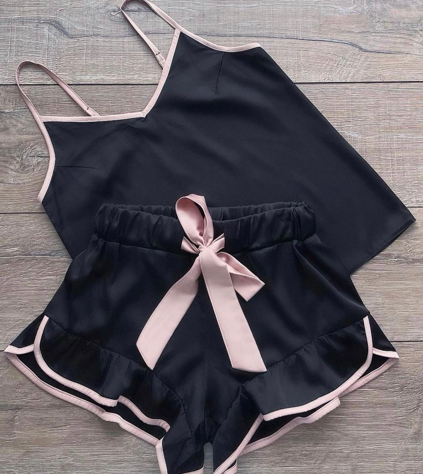 O Conjunto Anna em cetim preto foi pensado para quem leva uma rotina ativa e não abre mão de conforto na hora de descansar. Leve, macio e com caimento elegante, ele acompanha seus momentos de sono, autocuidado e relax em casa.